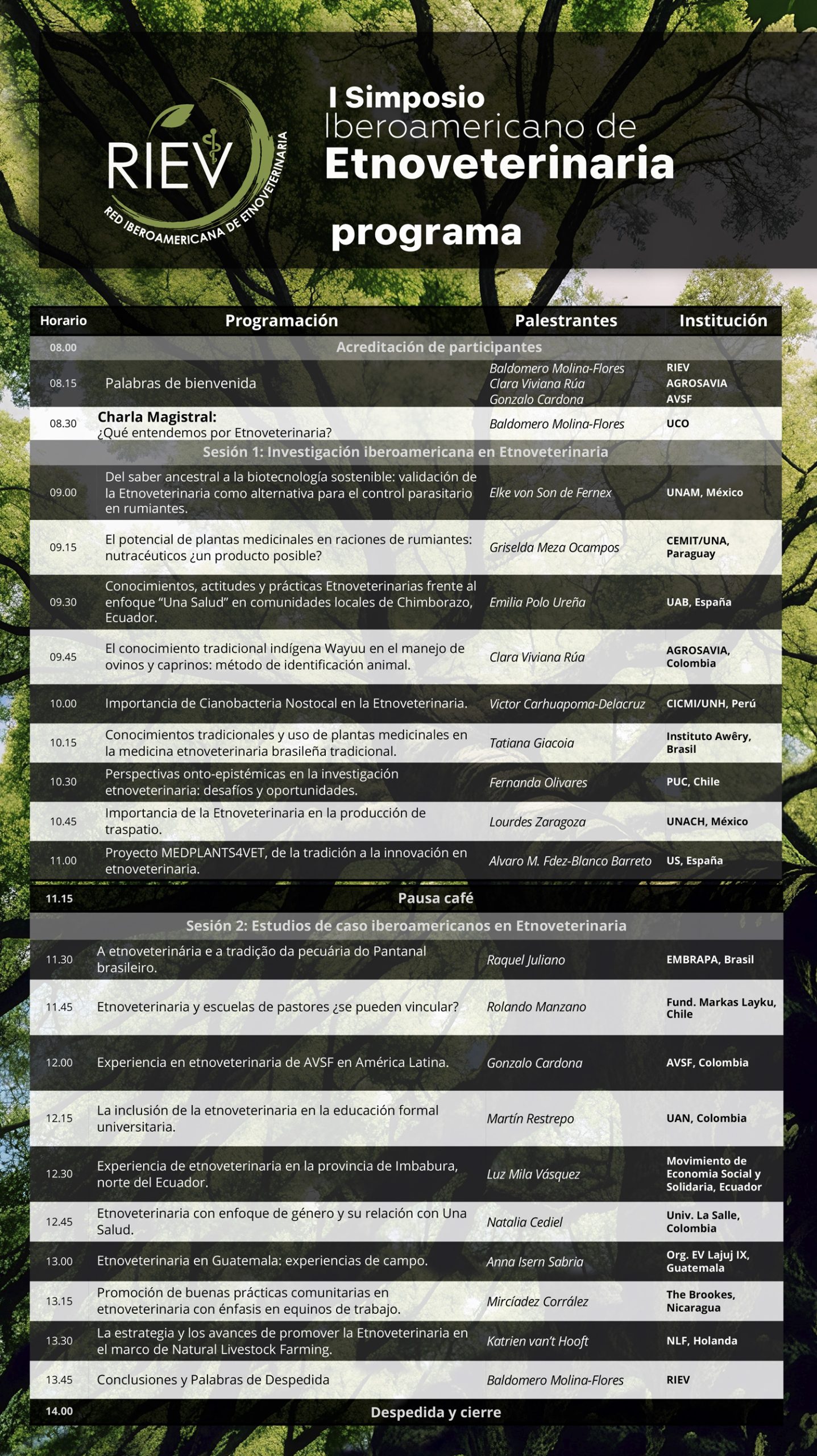 Es un honor invitarles al I Simposio Iberoamericano de Etnoveterinaria (presencial y virtual) organizado por la Red Iberoamericana de Etnoveterinaria – RIEV, con el apoyo de la Corporación colombiana de investigación agropecuaria – AGROSAVIA y Agrónomos y Veterinarios sin Fronteras -AVSF, que se celebrará el 25 de octubre de 2025 en Montería, Colombia de 08.00 am a 14.00 pm (horario de Colombia).